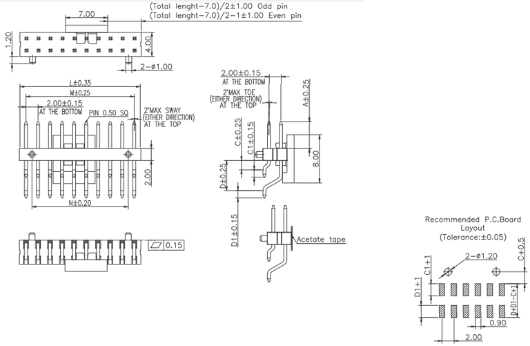 P/H1.0mm 雙排排針 CA201