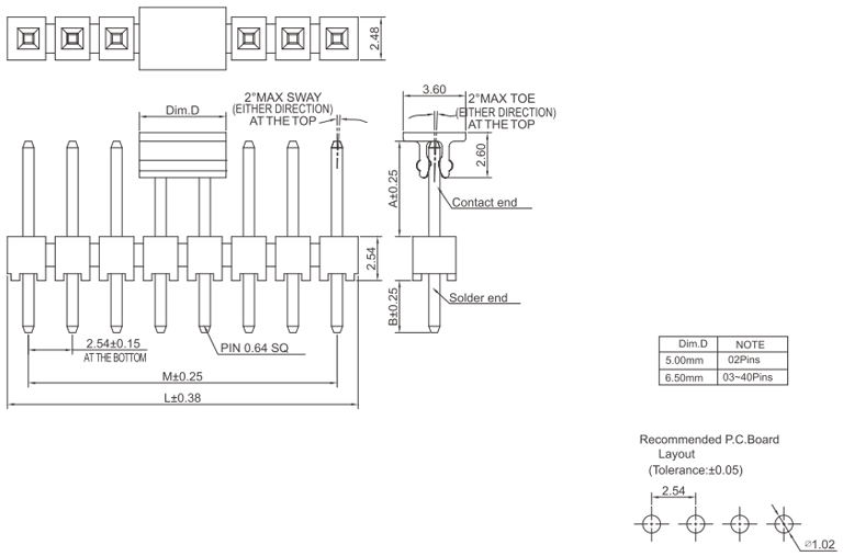 P/H2.54mm 單排排針 HA114